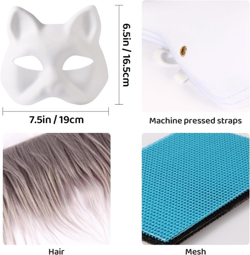 【Co otrzymasz? 】Pakiet zawiera pustą maskę *3, futro*2, siatkę na oczy *8 - Farba i klej nie są dołączone