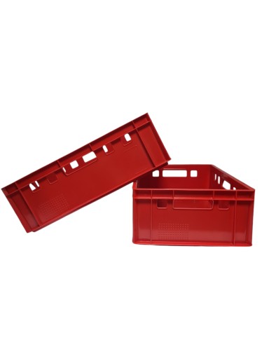 Oferujemy solidną skrzynkę transportową typu Euro E2, która została zaprojektowana z myślą o magazynowaniu i transporcie mięsa oraz produktów pochodzenia zwierzęcego. Wykonana z trwałego tworzywa, odporna na warunki temperaturowe i wilgoć, idealnie sprawdzi się w branży spożywczej i przetwórczej.
