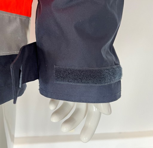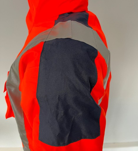 Taśmy odblaskowe na torsie i rękawach , dodatkowy pas odblaskowy na plecach i rękawach.