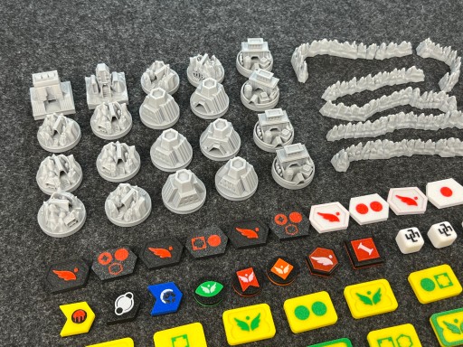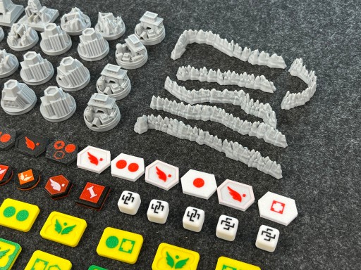 Produkt nielicencjonowany, widoczne na zdjęciach komponenty gry planszowej nie są częścią zestawu. Ogłoszenie dotyczy tylko plastikowych budynków, gór i żetonów. Jest to druk 3d i komponenty mogą zawierać drobne niedoskonałości, a także delikatnie różnić się odcieniem kolorystycznym.