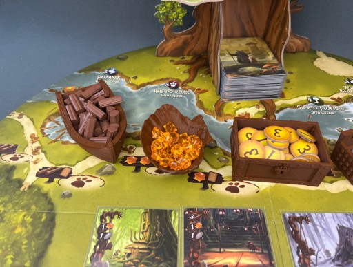 Przedmiotem sprzedaży są pojemniki na zasoby i podstawki na karty pasujące do gry planszowej Everdell, które zostały wykonane w technologii druku 3D.