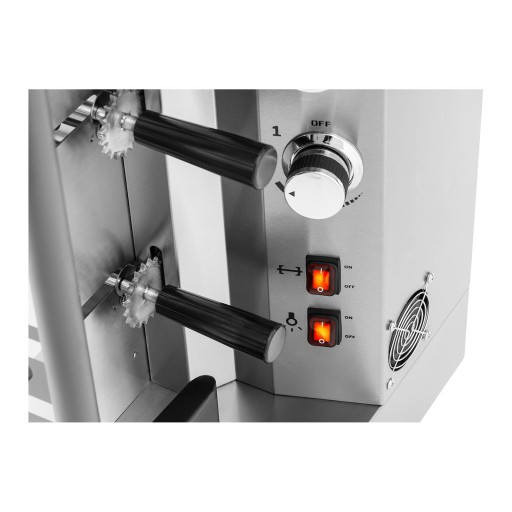 Elektryczny rożen do kurczaków marki Royal Catering pozwala przygotować pyszne kurczaki, rostbefy, porchetty, pieczenie i wiele innych przysmaków. Na czterech obracających się szpikulcach, z których każdy mieści od 4 do 6 kurczaków, można upiec ulubione specjały, równomiernie, delikatnie i z chrupiącą skórką. Aby to zrobić, należy niezależnie włączać i wyłączać każdy szpikulec, dzięki czemu potrawy przygotowywane są w tym samym czasie, a goście będą cieszyć się szerokim wyborem. Elektryczny rożen do kurczaka ma całkowitą moc 8000 W i osiąga temperaturę 250°C, więc działa szczególnie wydajnie i niezawodnie. Żaroodporne drzwi ze szkła hartowanego zapewniają doskonały widok na jedzenie przez cały czas grillowania. Dzięki oświetleniu wnętrza można również zaprezentować przysmaki w najlepszym świetle. Obudowa ze stali nierdzewnej nie pochłania smaku ani zapachów, jest wytrzymała i łatwa w czyszczeniu. Cztery koła umożliwiają ustawienie opiekacza w dowolnym miejscu. Solidna konstrukcja i dwa hamulce postojowe gwarantują stabilność.