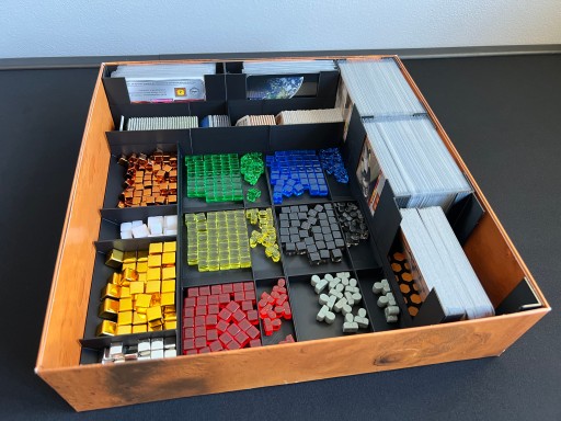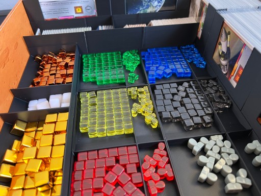 Insert w sposób znaczny uprzyjemnia rozgrywkę, wyciąganie kosteczek zasobów oraz znaczników graczy jest maksymalnie ułatwione dzięki zastosowaniu skośnej ścianki. Pojemniki na karty w czasie rozgrywki służą za podajniki. Posiadając wszystkie dodatki nie ma problemu z przechowywaniem pionowym gry i jej przenoszeniem (elementy nie rozsypują się). W przypadku nieposiadania wszystkich dodatków warto zastosować dodatkowe wypełnienie na górze pudełka np. karton albo piankę.
