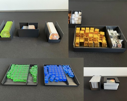 Produkt nielicencjonowany, widoczne na zdjęciach komponenty gry planszowej nie są częścią zestawu. Ogłoszenie dotyczy tylko insertu (organizera). Jest to druk 3d i komponenty mogą zawierać drobne niedoskonałości