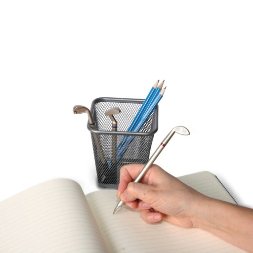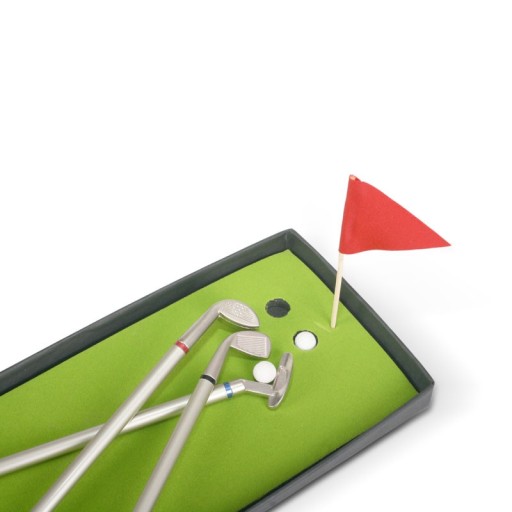 Ten elegancki zestaw długopisów powstał z myślą o ludziach ceniących sobie elegancję i odrobinę szaleństwa. Dzięki długopisom golfisty deluxe już nigdy nie powstydzisz się podpisywania kluczowych dokumentów w firmie, a przy okazji wzbudzisz spore zainteresowanie wśród współpracowników. Z powodzeniem sprawdzi się również podczas długo oczekiwanej przerwy w pracy - pozwoli rozegrać partyjkę golfa bez wstawania od biurka!W upominkowym pudełku znajdziesz trzy długopisy w najbardziej potrzebnych dla Ciebie kolorach. Są one odwzorowaniem prawdziwych kijów golfowych (driver, iron i putter). Wieczko pudełka stanowi mini pole golfowe z dwoma dołkami, które posłużą Ci do codziennego trenowania cennych strzałów.Odrobina przygody w biurowej monotonii jeszcze nikomu nie zaszkodziła, więc polecamy ten zestaw nie tylko dla wielbicieli golfa!