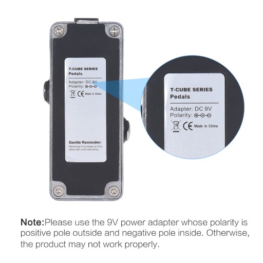 Proszę użyć zasilacza 9V, którego polaryzacja jest biegunem dodatnim na zewnątrz i biegunem ujemnym wewnątrz. W przeciwnym razie produkt może działać nieprawidłowo.