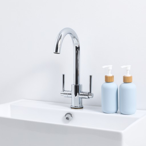 ✅Opis Nasza bateria kuchenna z dwoma uchwytami została zaprojektowana tak, aby ułatwić prace kuchenne. Ten kran kuchenny został zbudowany tak, aby był trwały i wytrzymał codzienne użytkowanie. Gładka powierzchnia kranu jest galwanizowana, co nadaje jej błyszczący i wypolerowany wygląd. Uchwyty zaprojektowano tak, aby były gładkie i łatwe do uchwycenia