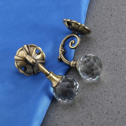 Design w stylu retro i vintage z dekoracją kryształowej kuli sprawia że będzie to nie tylko haczyk do wiązania zasłony ale także idealna dekoracja domu. Ma kolor antycznego brązu który nie blaknie i jest ozdobiony kryształową kulą o ładnej przezroczystości Szykowna i delikatna konstrukcja z nienagannym kunsztem. Gładka konsystencja o imponującym kolorze i połysku. Mocny materiał stopowy o dużej nośności. Łatwy w instalacji. Włóż rurkę rozprężną do otworu wywierconego w ścianie następnie wciśnij śrubę w kołek rozporowy a na koniec dokręć haczyk. Szerokie zastosowanie Idealny do wiązania lub mocowania zasłon lub jako haczyk do wieszania ubrań czapki kluczy ręczników parasoli itp. Twoja sypialnia salon
