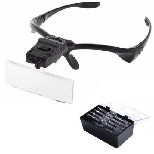 PROFESJONALNA LUPA ZEGARMISTRZOWSKA Z PODŚWIETLENIEM LED WYMIENNYMI SOCZEWKAMI 1x 1,5x 2x 2,5x 3,5x