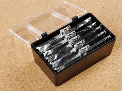 Lupa posiada 5 różnych i wymiennych szkieł powiększających, zapakowane w specjalnym pudełku ułatwiający przechowanie.