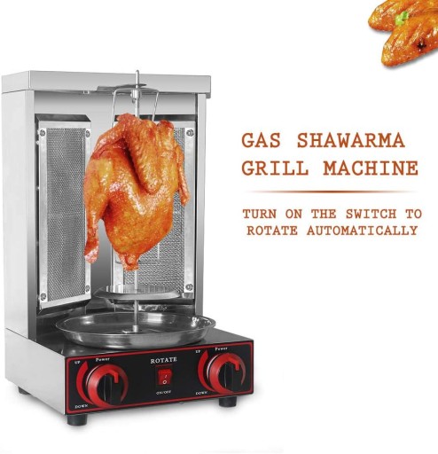 ☑️Pionowy grill gazowy obrotowy do kebaba/gyrosa to urządzenie przeznaczone do przygotowywania potraw typu kebab, gyros, shawarma oraz innych mięs opiekanych w pionie.