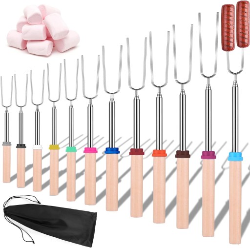 12X REGULOWANE WYSUWANE SZPIKULCE OGNISKO GRILL KIEŁBASA PIANKA SZASZŁYKI
