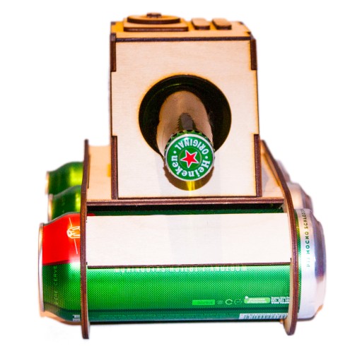 W naszym czołgu dostosowaliśmy jego konstrukcję aby mieścił 3 puszki piwa oraz jedną butelkę która "odgrywa" w nim rolę LUFY!