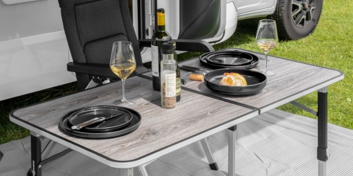 - Bardzo stabilny, ultralekki stół ze składanym blatem