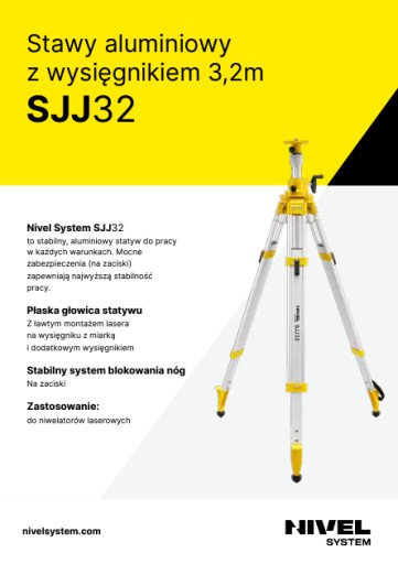 - precyzyjna regulacja wysokości – aluminiowe statywy z wysięgnikiem o maksymalnej wysokości 3,2 m do niwelatorów laserowych
