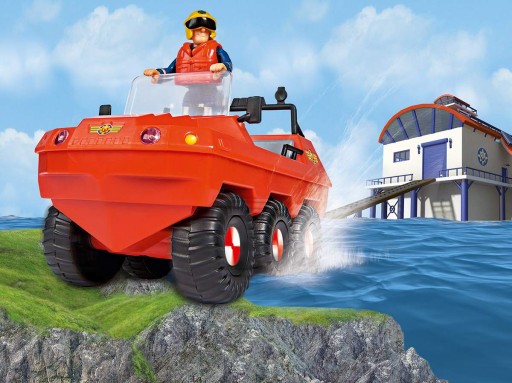 Skuter z figurką Sama, pojazd nie tylko jeździ na 6 kółkach, potrafi także pływać po wodzie, akcesoria.
