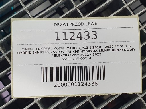 Przedmiot aukcji: DRZWI PRZÓD LEWE PRZEDNIE TOYOTA YARIS III KIEROWCY