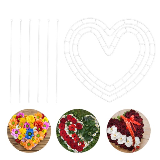 [Pakiet zawiera]: Rama wianka w kształcie jest wyposażona w 2 uchwyty w kształcie serca i sześć prętów. Ten wzór doda dodatkowej elegancji Twojej kompozycji kwiatowej.