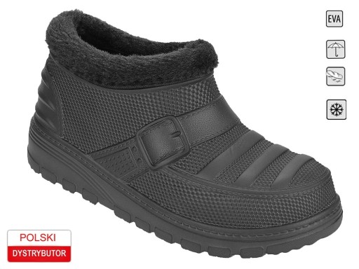 Krótkie męskie kalosze z ociepleniem wykonane z pianki EVA, dzięki temu są niezwykle lekkie i wygodne.