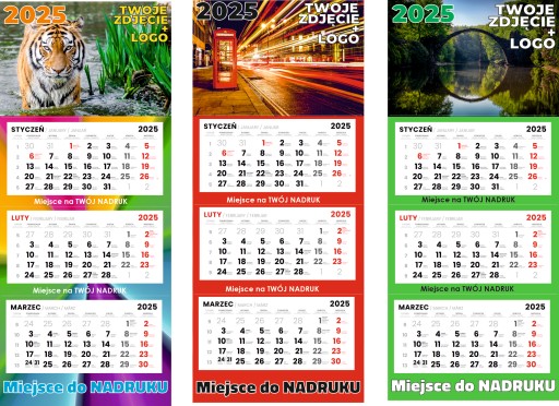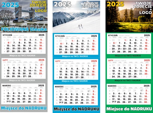 Wśród naszych innych ofert można znaleźć inne warianty kalendarzy trójdzielnych, różniące się parametrami druku i cenami:
