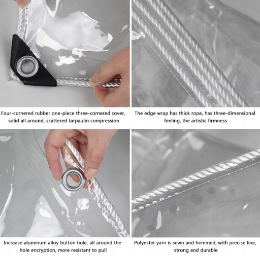 Bardzo przydatna plastikowa osłona: Chronić przed zimnem, wilgocią, wodą, ciepłem, kurzem, pogodą. Nadaje się do balkonów, dachów, basenów, gospodarstw rolnych, donic, garaży, magazynów, galerii handlowych, parków, restauracji, pawilonów i dziedzińców.