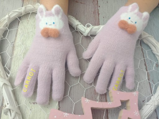 - Króliczek na rękawiczkach ma wypukłe elementy 3D.
