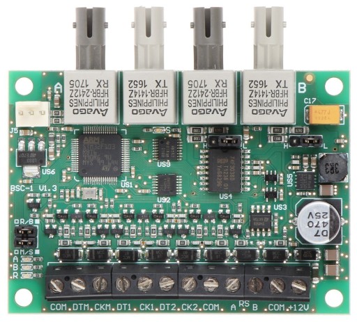 - 4 gniazda do podłączenia dwóch par światłowodów (w każdej parze jeden światłowód nadawczy i jeden odbiorczy)