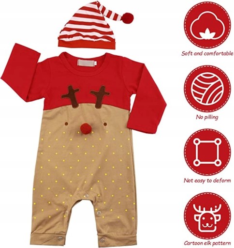 Pajacyk ubranko świąteczne dla dzieci strój Renifer 80cm 6-12 miesięcy