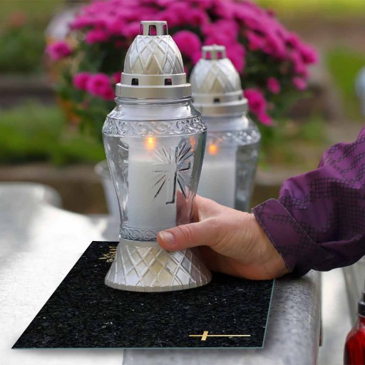 - Trwałość - szklana podstawka pod znicze wykonana jest z certyfikowanego szkła hartowanego, co czyni ją niezwykle odporną na wodę i warunki atmosferyczne.
