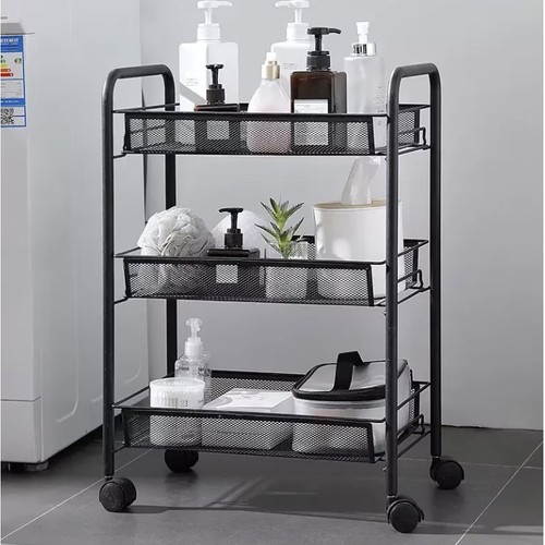 • TRZY POJEMNE PÓŁKI W FORMIE KOSZYKÓW - regał posiada trzy poziomy w formie koszyków, które umożliwiają łatwe przechowywanie i segregację różnych akcesoriów. Maksymalne obciążenie każdej półki to aż 7 kg, co pozwala na przechowywanie cięższych przedmiotów, takich jak garnki, narzędzia, czy kosmetyki. Otwarta konstrukcja półek zapewnia szybki dostęp do przechowywanych rzeczy, ułatwiając organizację przestrzeni. Dzięki temu regał sprawdzi się idealnie jako dodatkowe miejsce na akcesoria kuchenne, łazienkowe czy biurowe.