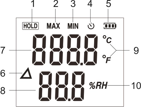 - Przycisk wyboru trybu pomiaru: maksymalny, minimalny, różnicowy.