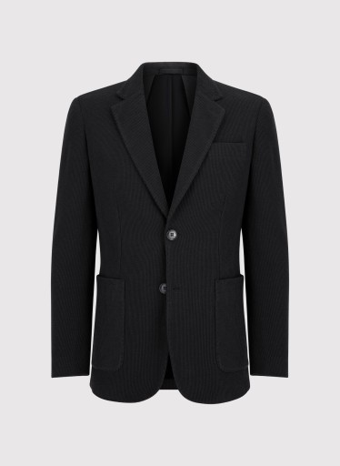Czarna casualowa marynarka męska z kolekcji Pako Lorente. Model o Fasonie Slim Fit, który doskonale podkreśla atuty męskiej sylwetki, jednocześnie optycznie ją wydłużając i wyszczuplając. Dwie proste klapy, ułożone w literę V, potęgują ten efekt. Marynarka z jednorzędowym zapięciem na dwa dopasowane kolorystycznie do tkaniny guziki. Front marynarki został wyposażony w dwie naszywane kieszenie oraz brustaszę, którą warto uzupełnić poszetką. Natomiast z tyłu marynarki znajdują się dwa rozcięcia, które pozwalają na swobodne wykonywanie ruchów. Rękawy marynarki zostały wykończone zapięciem na cztery małe guziki. Marynarka w całości pokryta charakterystycznym, strukturalnym wzorem. Marynarka w ciemnym odcieniu doskonale wpasuje się w każdą Twoja stylizację. Slimowaną marynarkę najlepiej zestawić z lekko zwężanymi ku dołowi spodniami i t-shirtem lub koszulą.