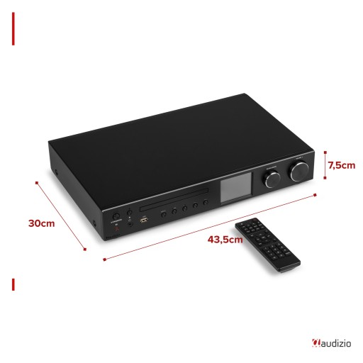 - Opcje odtwarzania Streaming BT 5.0, CD, USB, radio FM, radio DAB+, radio internetowe, wejście liniowe