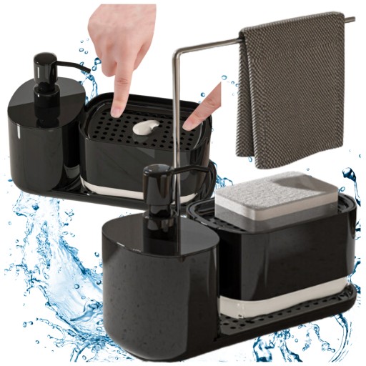DOZOWNIK DO PŁYNU do kuchni do naczyń mydła ORGANIZER CZARNY z pompką