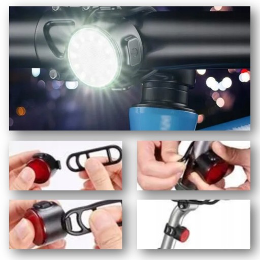 - Łatwy montaż: Uniwersalne uchwyty umożliwiają szybkie i pewne zamocowanie lampek na kierownicy oraz ramie roweru. Montaż jest szybki i nie wymaga użycia narzędzi.