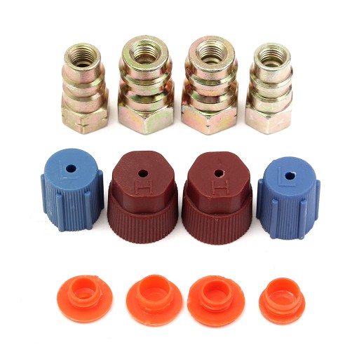 ✅1 x 3/8-24UNF (3/16 cala) R12/R134a Modernizacja po stronie dolnej 1 x 3/8-24UNF (3/16 cala) R12/R134a Modernizacja po stronie wysokiej 1 x 7/16-20UNF (1/4 cala) R12 /R134a Modernizacja po stronie dolnej 1 x 7/16-20UNF (1/4 cala) R12/R134a Modernizacja po stronie wysokiego 4 x Nakładki układu klimatyzacji 4 x Zawory wymienne