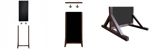 Wodoodporny, potykacz w formie stojącej, dwustronnej tablicy kredowej. Tablica usytuowana jest na szerokiej podstawie. Możne ona być eksponowana na zewnątrz niezależnie od pogody. Drewniana rama jest olejowana, co zabezpiecza ją przed szkodliwym działaniem czynników atmosferycznych, takich jak opady deszczu i śniegu. Powierzchnia do pisania wykonana jest z wodoodpornej płyty ABS z tworzywa sztucznego, o bardzo dużej wytrzymałości. Zabezpieczenie przed wilgocią gwarantuje długoletnie i komfortowe eksploatowanie potykacza.