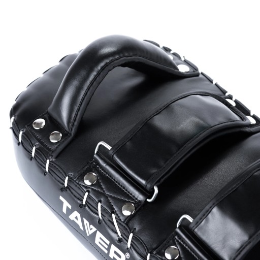 Tarcza treningowa "TAVER ARS-1201" sprawdza się idealnie w treningu stójkowych sportów walki (Kickboxing, Muay Thai, Karate itp) w celu trenowania kombinacji składających się z technik bokserskich i kopnięć.Tarcze są wygodne i lekkie co umożliwia trenerowi szybkie zmiany ich ułożenia podczas wykonywania kombinacji ciosów. Trwała skóra syntetyczna, z której wykonano tarczę zapewnia trwałość i odporność na rozerwania oraz przetarcia.