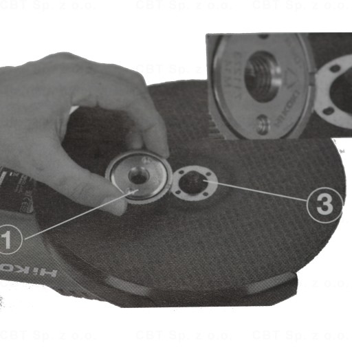 - Nałożyć nakrętkę mocującą QUICK (1) na wrzeciono (3)