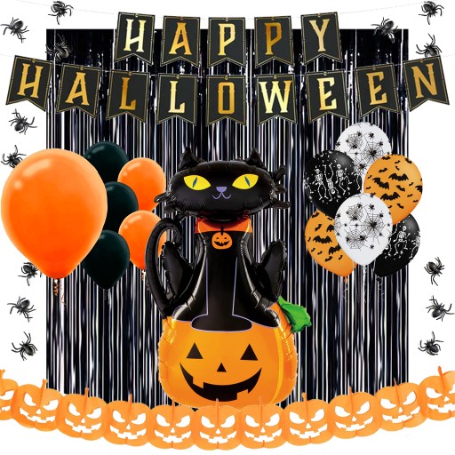 Duży Zestaw Balony na Halloween Kurtyna Baner Dynia Pająki XXL
