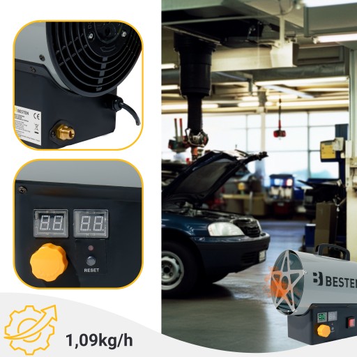 Nagrzewnica charakteryzuje się bardzo niskim zużyciem gazu na poziomie zaledwie 1,09kg/h.