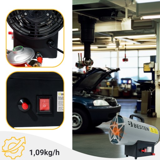 Nagrzewnica charakteryzuje się bardzo niskim zużyciem gazu na poziomie zaledwie 1,09kg/h.