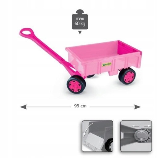 Dzieci uwielbiają przewozić w nim swoje zabawki, piasek, liście.