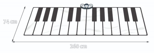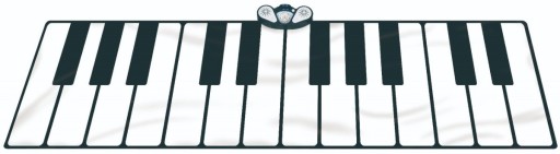 Duża mata muzyczna w kształcie keyboardu to propozycja dla dzieci lubiących ruch, muzykę i świetną zabawę. Mata poprzez zabawę rozwija zdolności muzyczne, koordynację ręka – oko oraz zdolności sensoryczne. Zestaw składa się z maty z panelem muzycznym w górnej części oraz kabla MP3. Na panelu muzycznym znajdują się dwa głośniki, pokrętło głośności, wejście MP3 oraz 5 przycisków z wyborem trybów: tryb nagrywania, tryb odtwarzania nagranego dźwięku, tryb demo, tryb odtwarzania, tryb tonowy.