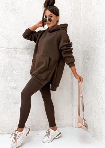 ДЛИННАЯ СВИТШОТА С ПРОРЕЗАМИ И ЛЕГГИНСАМИ С УТЕПЛЕННЫМ СПОРТИВНЫМ КОМПЛЕКТОМ КОРИЧНЕВАЯ