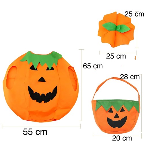 ⭐ Zestaw składa się z kostiumu dyni, czapeczki na gumce oraz koszyczka na cukierki.