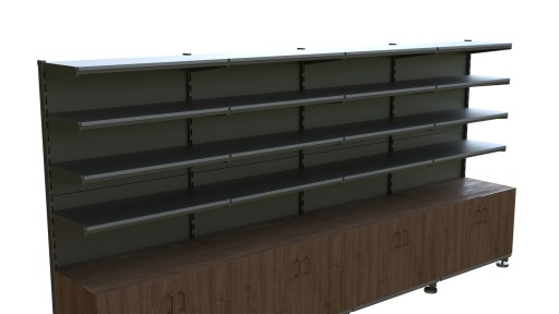 - Regały posiadają 4 półki a gondole tzn regał dwustronny 4 półki +4 półki