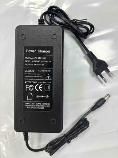 Zasilacz DC 54,6 V / 2A, ładowarka akumulatorów litowych 5,5 mm z wtyczką, do pojazdów elektrycznych / akumulatorów, 3-stopniowy impuls, gwarancja bezpiecznego ładowania, wtyczka UE AC 100-240 V.