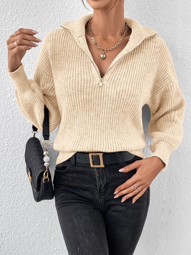 SWETEREK ZE STÓJKĄ Z ROZPINANYM DEKOLTEM LUŹNY BEŻOWY CASUAL SHEIN M 38
