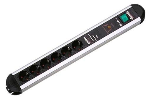 Table socket PRIMO-CLASSIC-ALU 6-gang with switch 2m H05VV-F 3G1.5mm2, colour black. FULL DEVICE PROTECTION in a box.